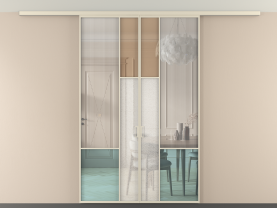 Дополнительно на раздвижную двустворчатую перегородку вдоль стены и четырехстворчатую перегородку внутри проема с двумя неподвижным полотнами можно установить механизм синхронного открывания — при открывании одной створки, вторая открывается автоматически.